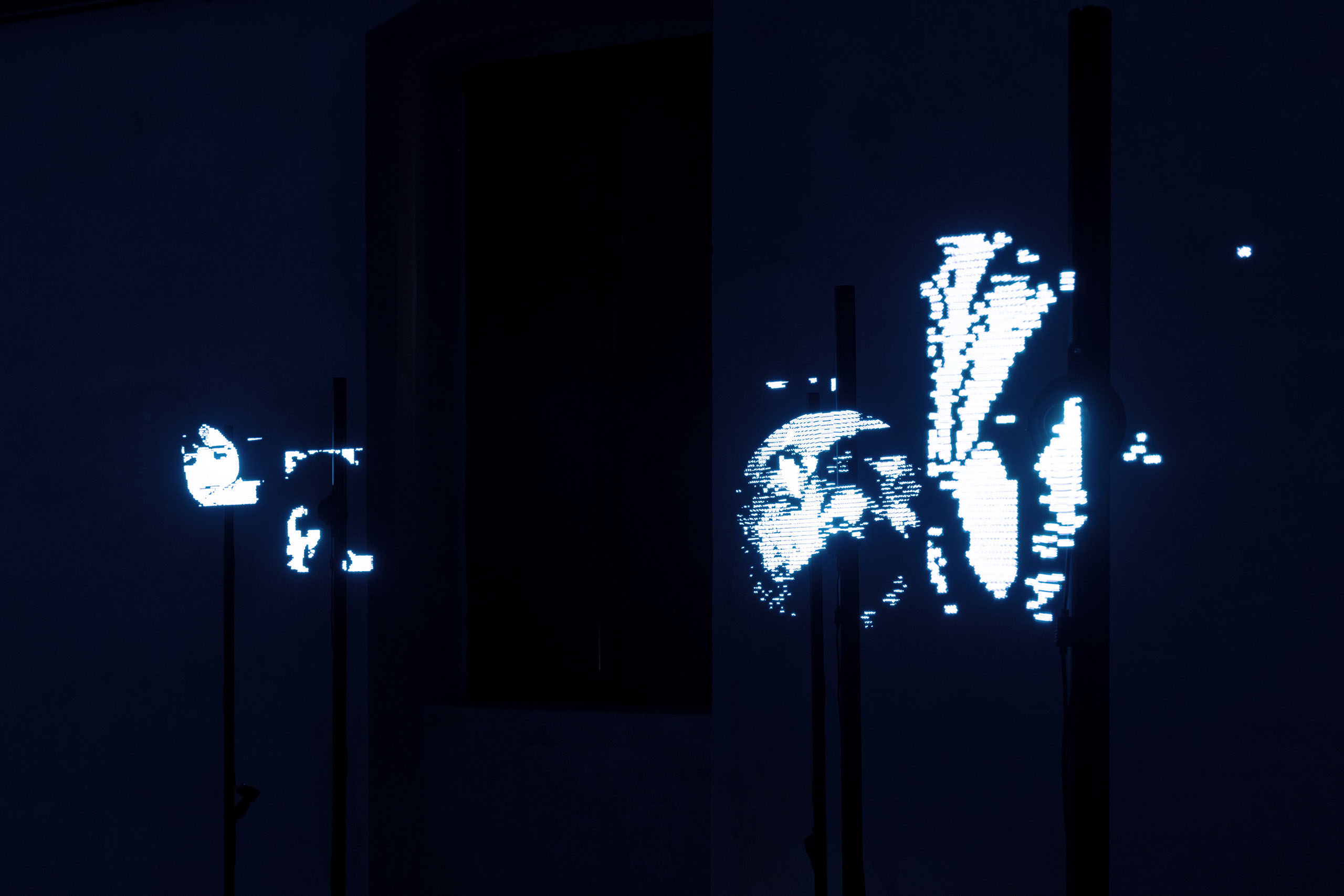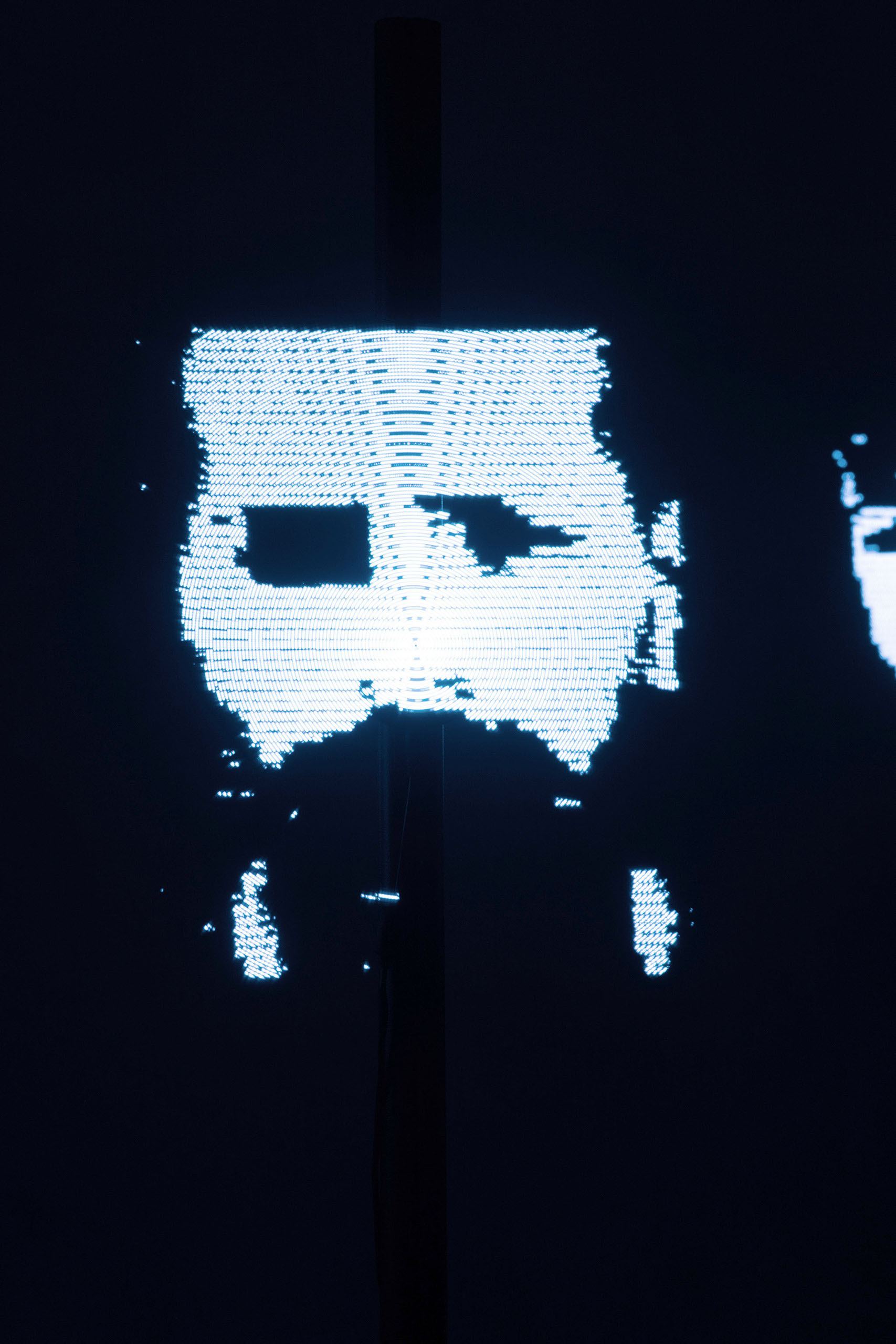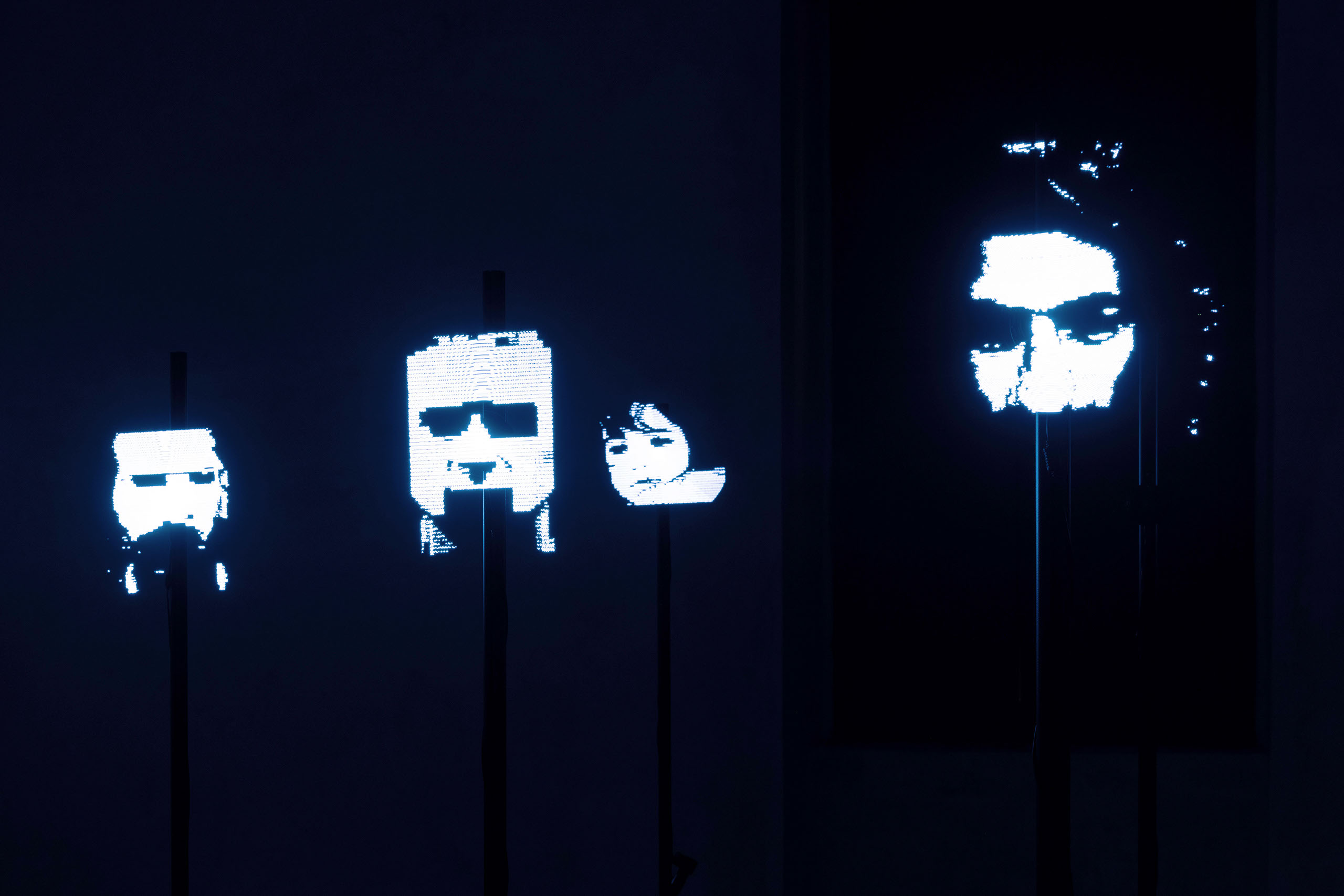 Undici teste che riempiono il luogo espositivo in un continuum tra luce, tempo e spazio.